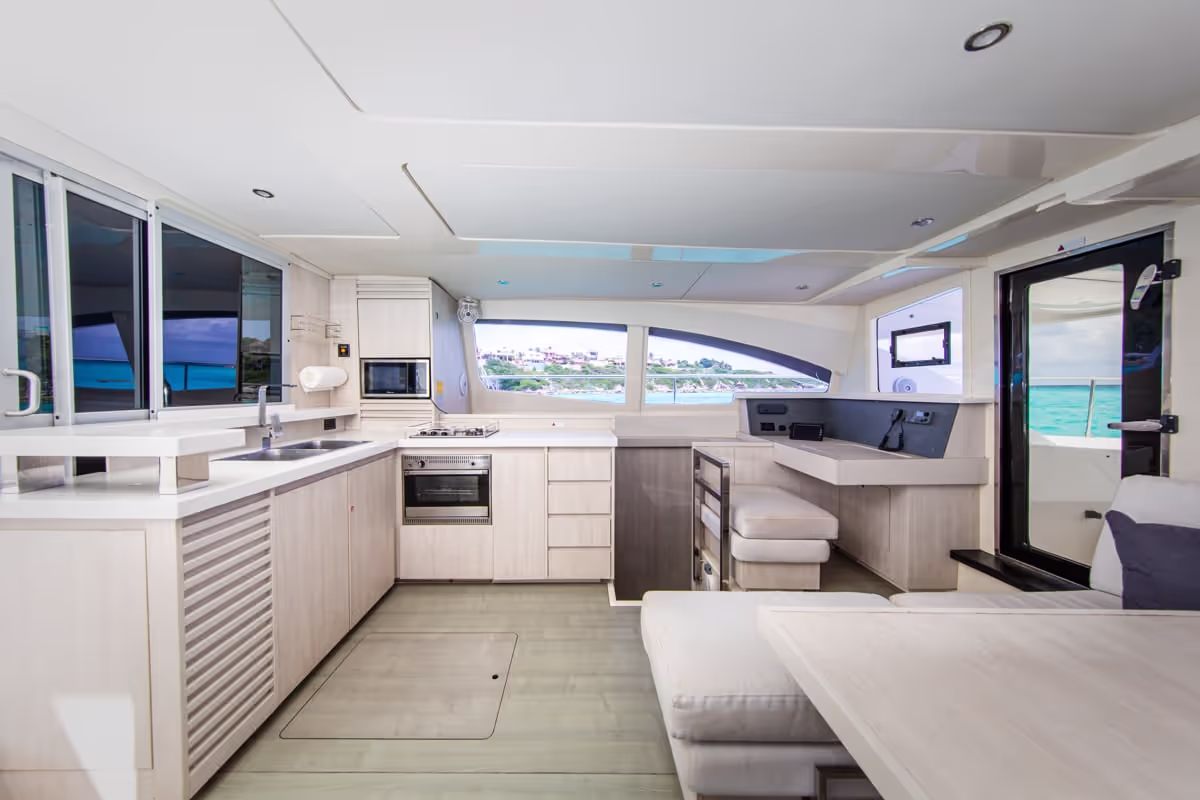 Navegue en este lujoso catamarán con un motor de 51 pies, que combina lo mejor de un catamarán con la comodidad de un yate a motor. Con amplias áreas de entretenimiento, un amplio flybridge y un servicio de primera calidad, este yate es ideal para reuniones familiares o salidas grupales.