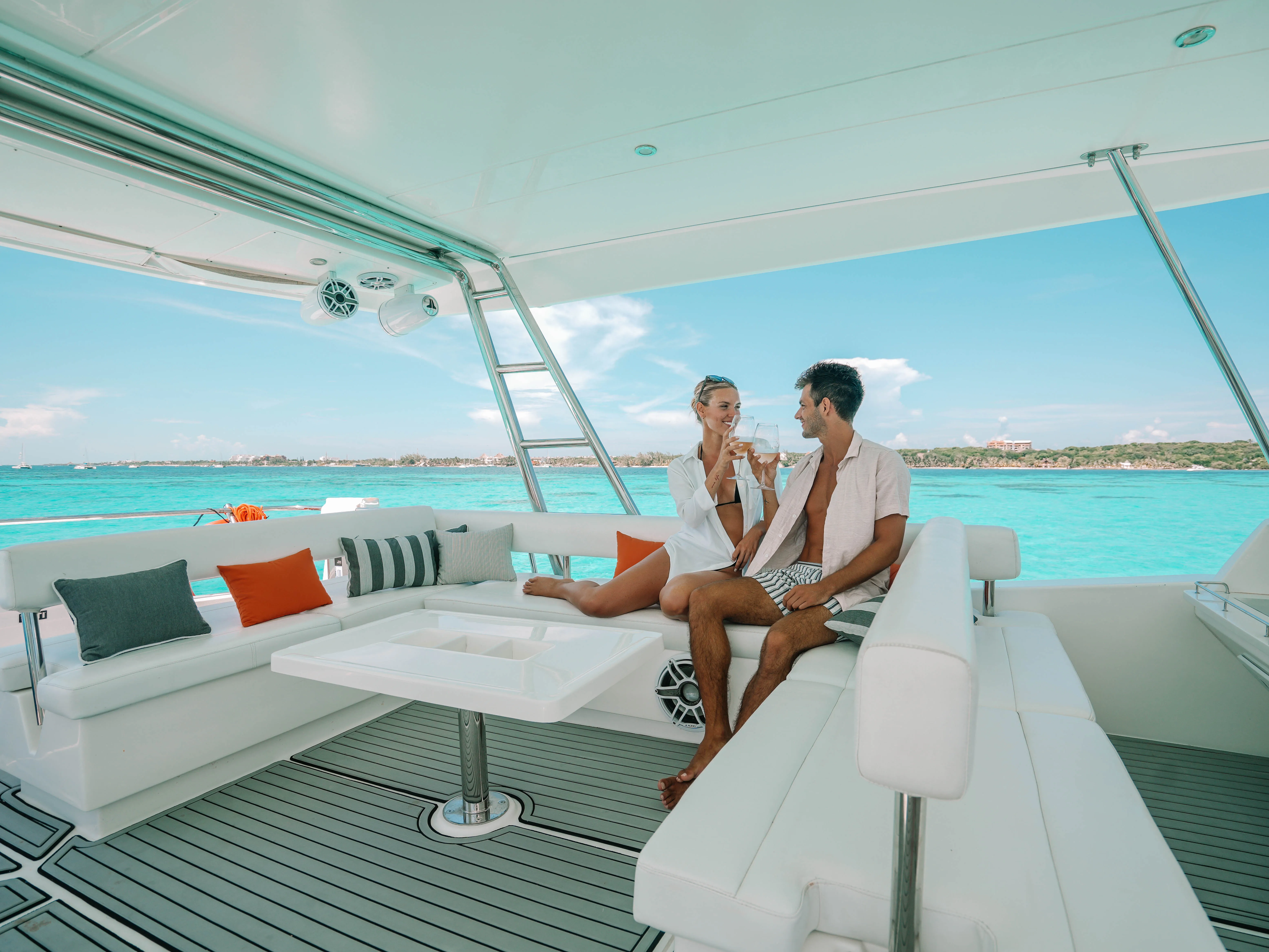 Embark on a luxurious journey aboard the 51 ft catamaran, perfect for private groups of up to 30 guests. Whether you’re celebrating a special occasion, gathering with family, or simply enjoying a day of relaxation, this PowerCat offers the ultimate experience along the stunning Riviera Maya coast.