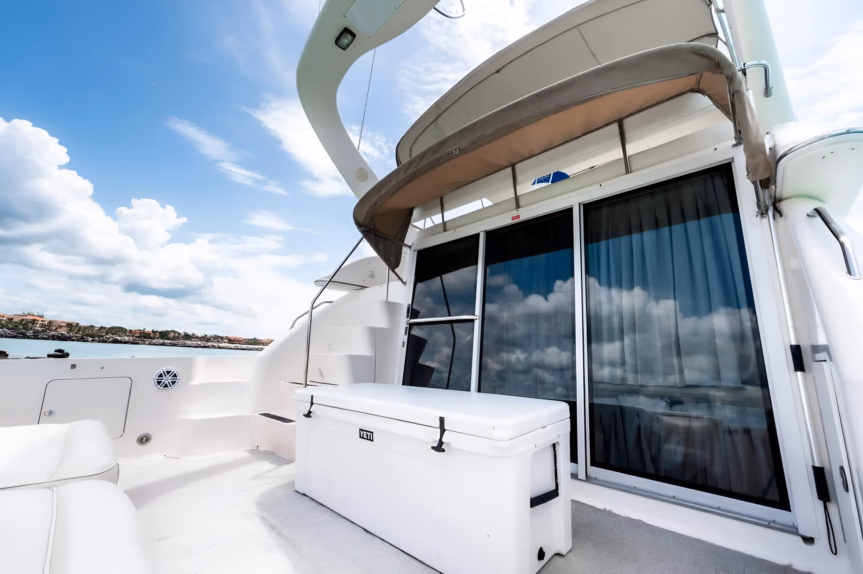This 51ft sea ray is the perfect companion for cruising the Riviera Maya coastline. With sleek design, comfortable seating on the flybridge and aft deck, sunbeds, and a cool interior, this yacht provides a luxurious experience. Our five-star crew is ready to ensure an unforgettable day on the water.