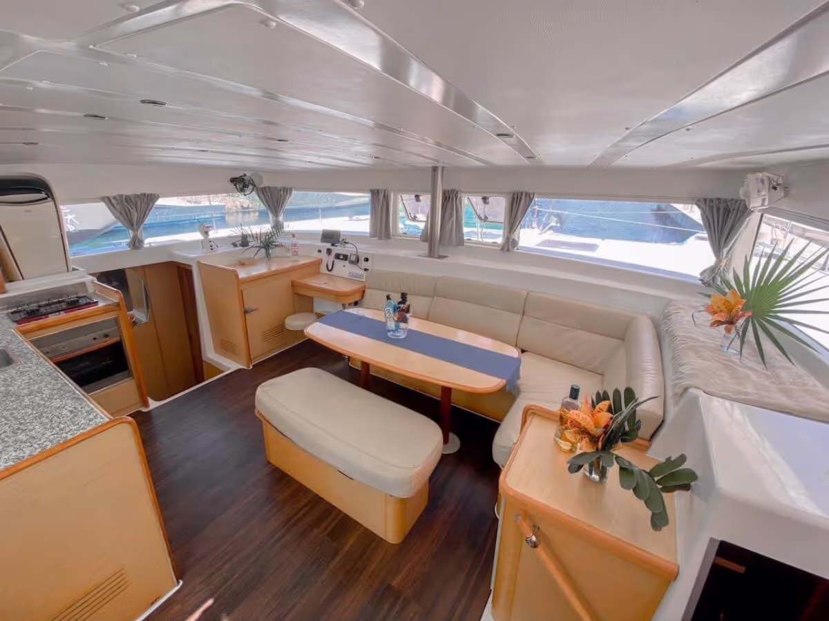 Discover this luxurious 42 ft catamaran, designed with fluid curves and a dynamic style, offering a stable and comfortable sailing experience.