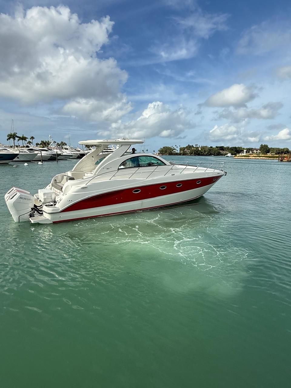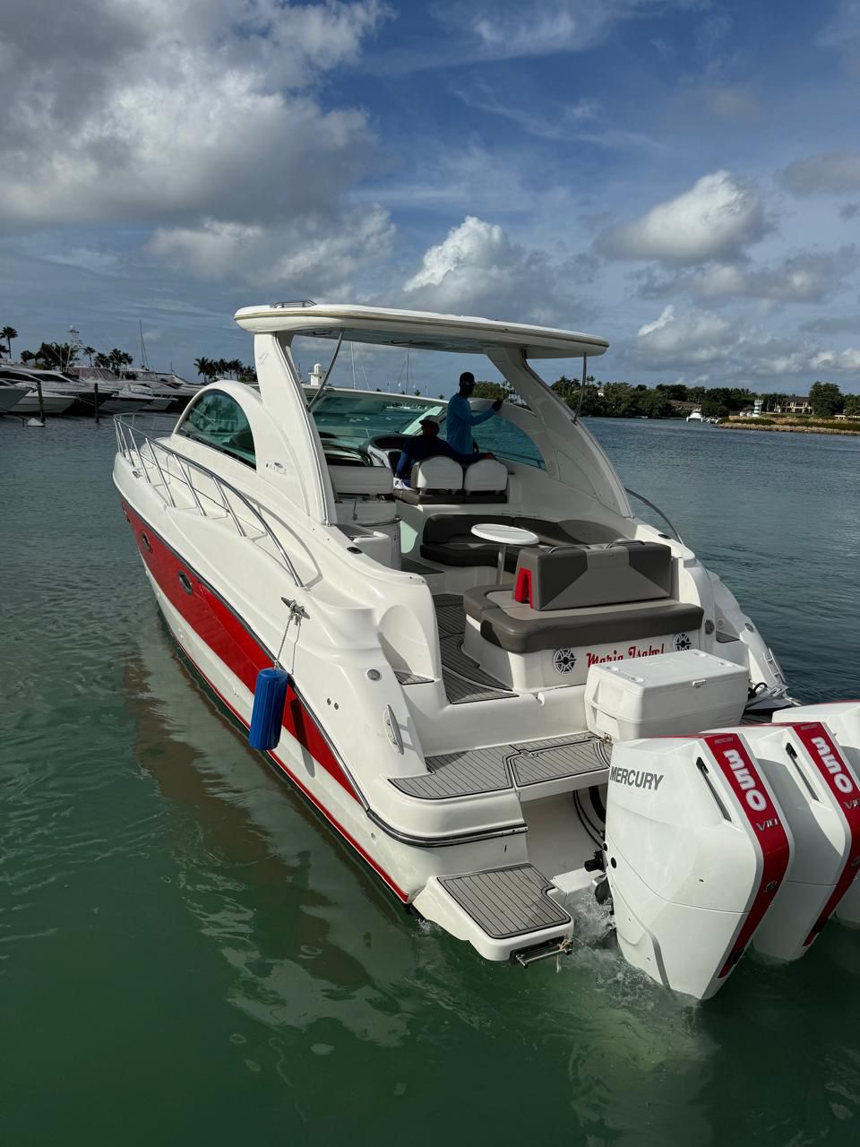 Cruise Punta Cana's coastline aboard the 43 ft Marisabel yacht with a professional crew and island destinations for up to 10 guests.