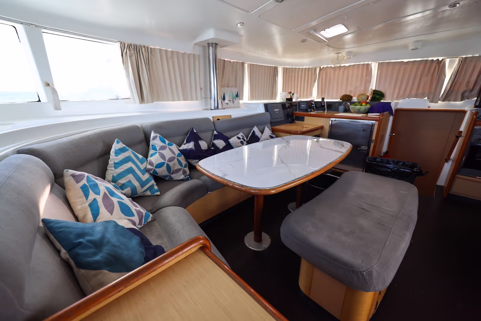 Enjoy an elegant and spacious sailing experience aboard this 47 ft Leopard catamaran.