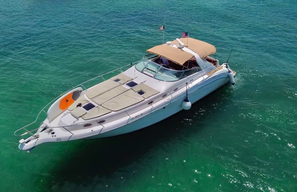 Experience this 48' Sea Ray offers one of the largest front exterior spaces with custom-made mattresses, perfect for sunbathing, dancing, or relaxing.