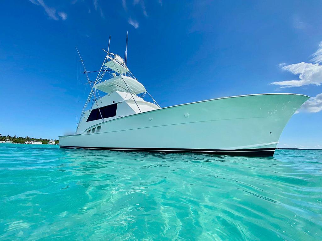 Charter the 53 ft Hatteras 53 for a private fishing trip in Punta Cana with crew, gear, and beverages for up to 15 guests.
